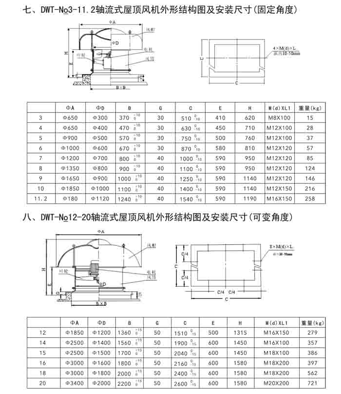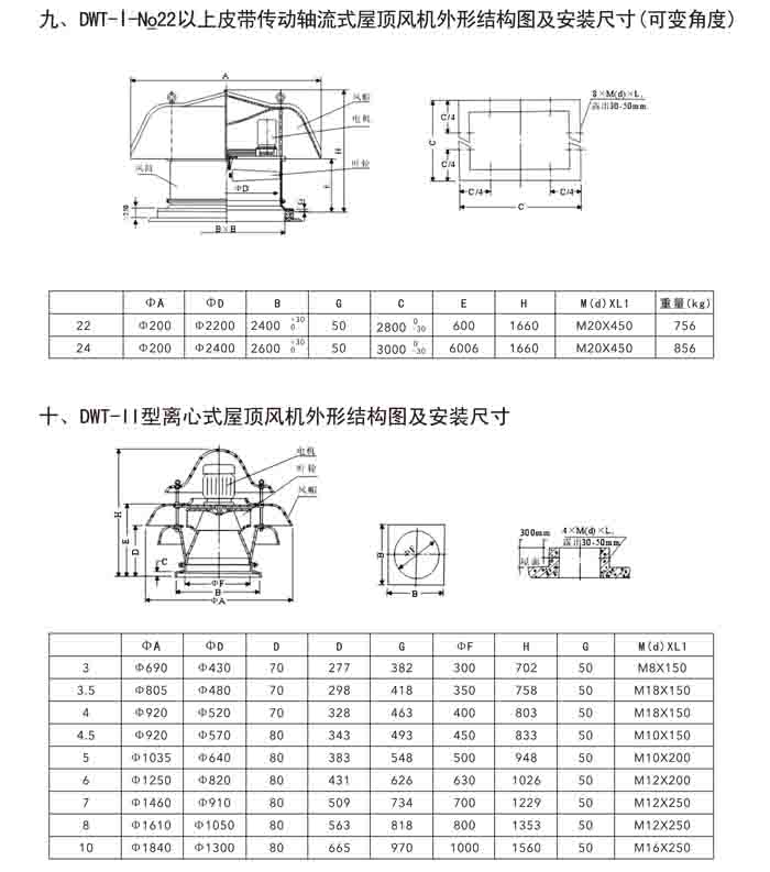 三、DWT-IV 系列無電機渦輪屋頂排風機