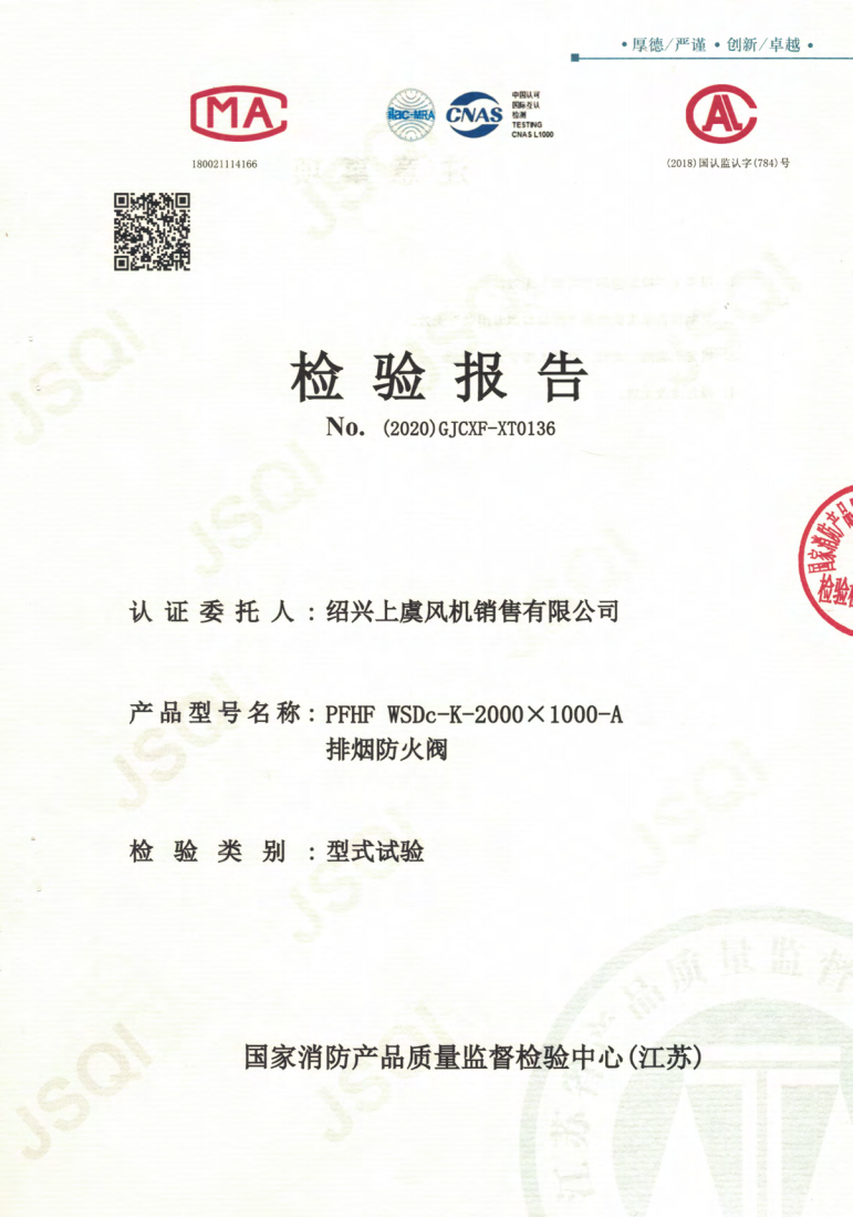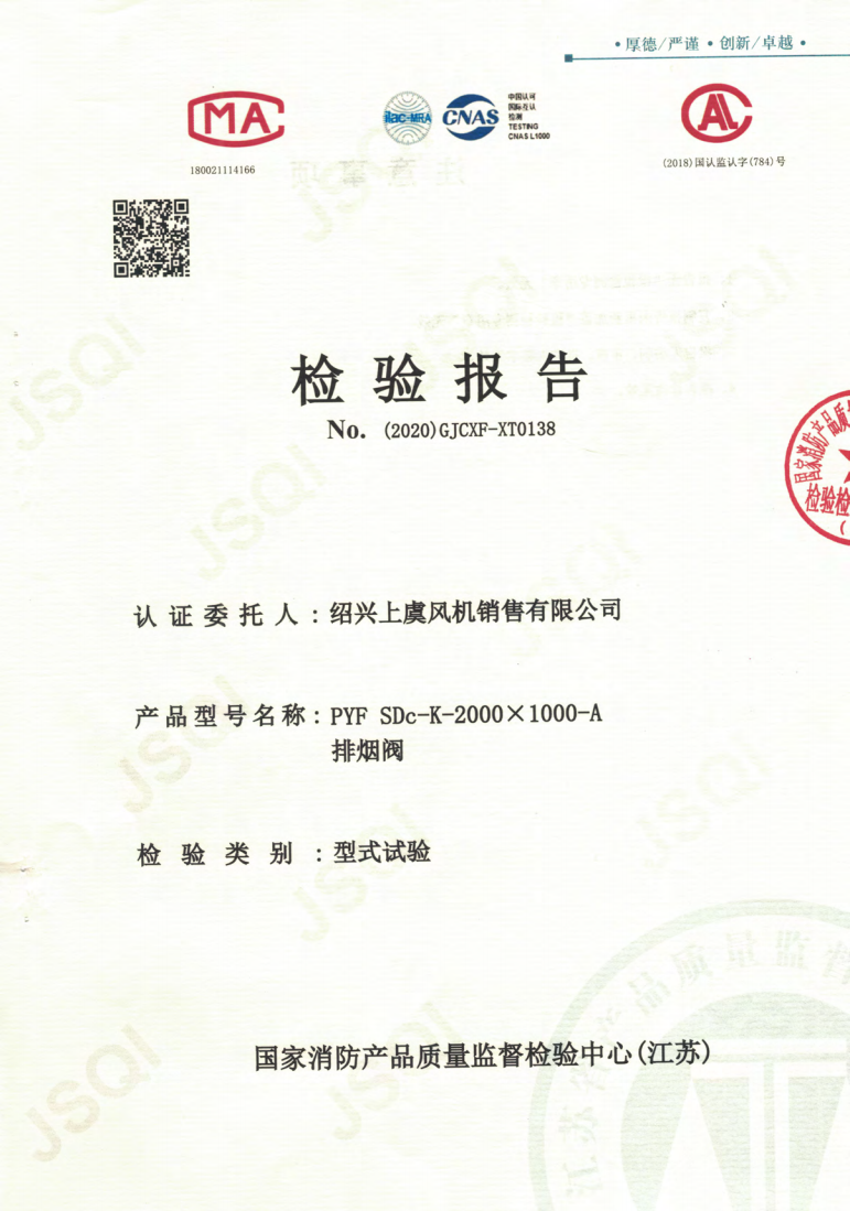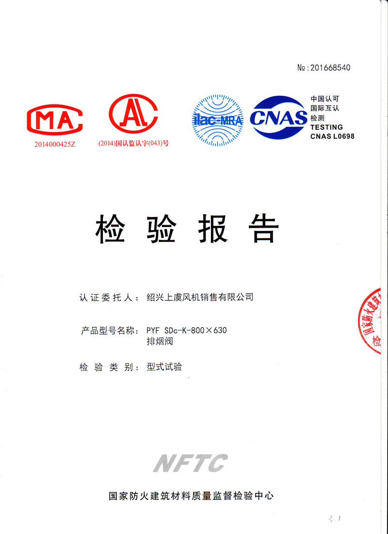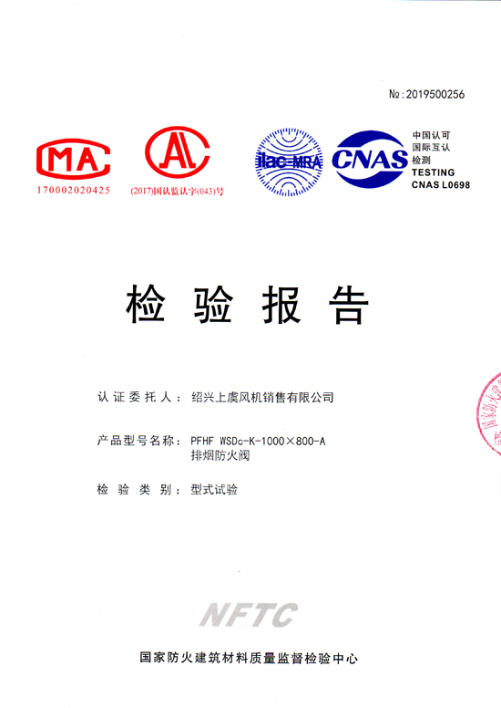 生產許可證檢驗報告低噪聲屋頂風機 生產許可證檢驗報告低噪聲軸流風機 生產許可證檢驗報告低噪聲柜式風機箱 排煙防火閥1000X800-A