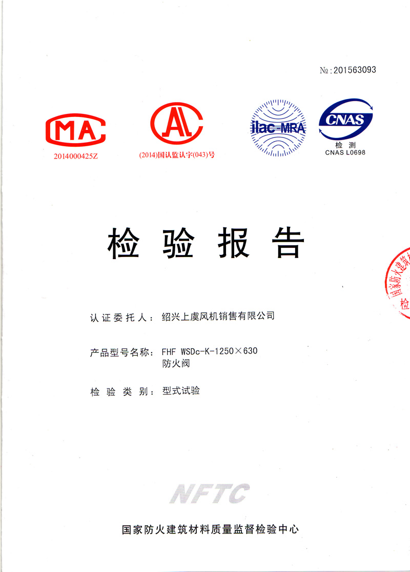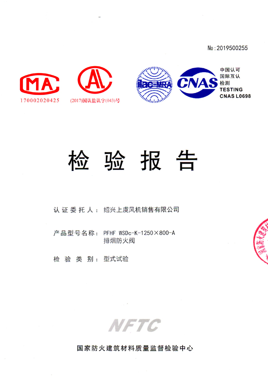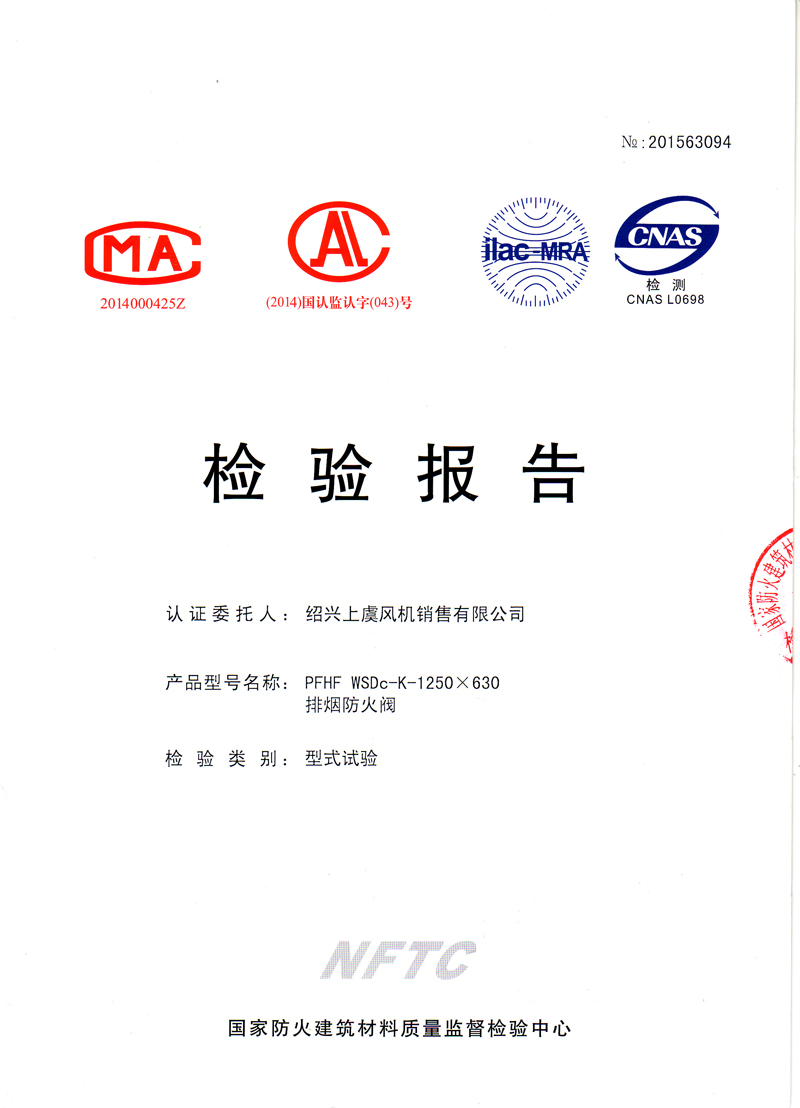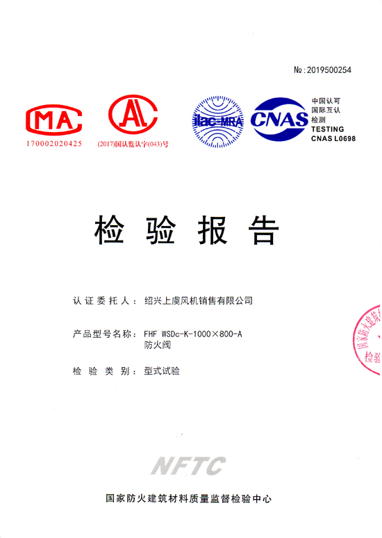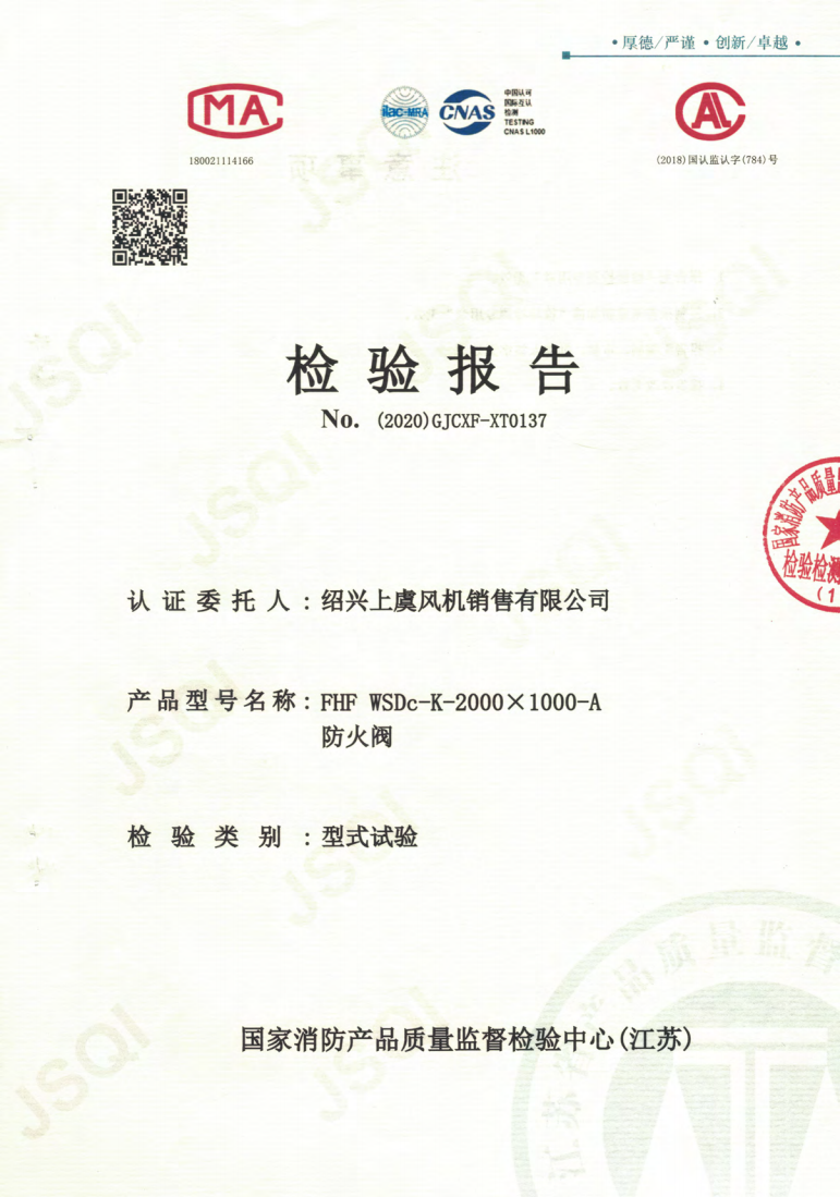 生產許可證檢驗報告低噪聲屋頂風機 生產許可證檢驗報告低噪聲軸流風機 生產許可證檢驗報告低噪聲柜式風機箱 排煙防火閥1000X800-A